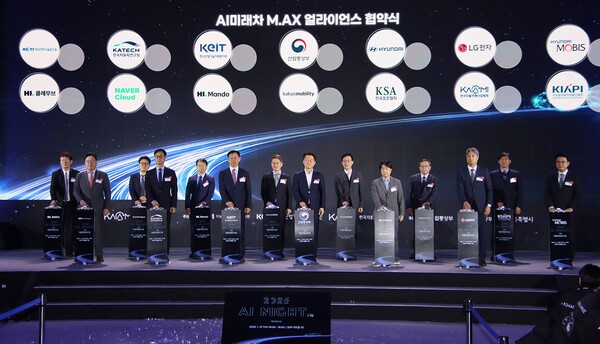 행사의 마지막을 장식한 3부 'AI Networking Night'에서는 AI 미래차 M.AX 얼라이언스 협약식과 함께 자율주행협회 신규 회원 가입식, 유공자 포상이 진행됐다. 얼라이언스는 완성차·부품·IT 기업을 중심으로 중견·중소기업, 스타트업, 투자기관까지 참여하는 민관 협력형 연합체로 글로벌 시장에서 즉시 경쟁 가능한 AI 미래차 성공 사례 창출을 목표로 한다.