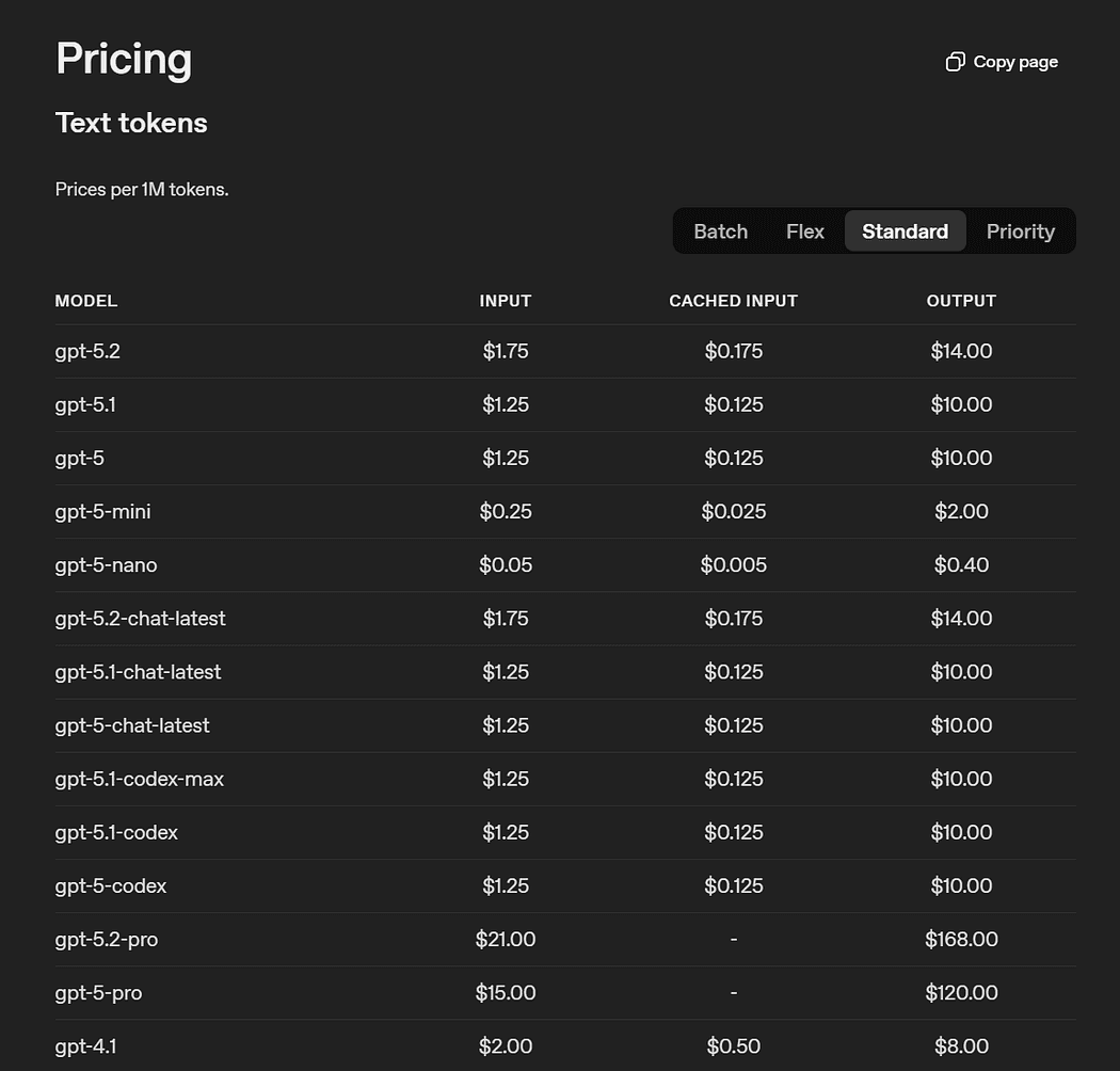 Many of the big-tech AI platforms that power today’s AI services charge based on the amount of data processed. If you look at OpenAI’s LLM API pricing as an example, the cost per one million tokens is clearly listed by model — and they even bill input tokens and output tokens separately.