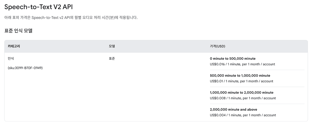 The same applies to Speech-to-Text (STT) model APIs, which are essential for voice AI services that convert speech into text that language models can handle. If you look at Google Cloud’s STT API pricing policy, the price is determined in proportion to the length and volume of the audio input.